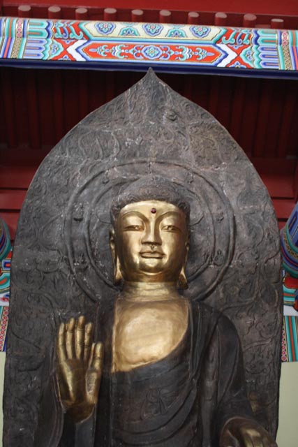 Bronze Shakyamuni Buddha at Xiangshan Temple, Luoyang, Henan, near the Longmen Grottoes. This is a reconstruction of a famous ancient temple--but the reconstruction dates to the Qing dynasty! (Most of it is much newer, however). It's across the river from the majority of the grottoes at Longmen.